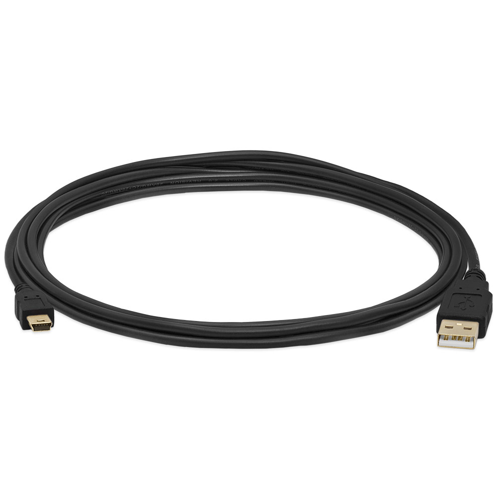 USB 2.0 A to Mini B 5-pin nickel-plated cable – 10 ft, black. High-speed connection up to 480 Mbps from computers to mobile devices, cameras, MP3, more. Compatible with USB 1.0/1.1. Shielded, nickel-plated connectors