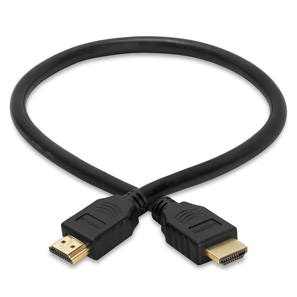 High Speed HDMI Cable with Ethernet 28AWG – 1.5 Feet The newest and best digital video connection on the market. HDMI is the only cable that can transfer uncompressed high-definition video and multi channel digital audio in resolutions higher than 1440p. The cable will allow the transfer of digital audio and video in a single cable, permitting a less confusing mess of wires and a cleaner entertainment center. The HDMI connector is small, which makes it is ideal for installers and in-wall use. HDMI cables can be used with your HDTV’s, DVD players, game consoles, cable and satellite set top boxes and DVRs. This cable conforms to the latest HDMI version. The HDMI Ethernet Channel – Delivers ethernet data interconnectivity to compatible devices through the HDMI port so you don’t need extra cables to get extended features. Audio Return Channel – Allows the HDMI connection between a television and A/V receiver to transmit audio two ways, both upstream and downstream. This eliminates the need for a separate audio cable and ensures you maintain the high digital audio quality of HDMI. 3D Support – Supports several different methods of rendering 3D images. 4K x 2K Support – Resolution on par with state-of-the-art Digital Cinema projectors used in the local multiplexes will be coming to your living rooms. 4K x 2K represents resolutions of 3840×2160 and 4096×2160. More Color Spaces Supported – Supports three more color space options, sYCC601 color, Adobe RGB Color and Adobe YCC601 color in addition to the X.V color support previously supported by Deep Color. Each of these promise to deliver a wider palette of colors to bring you more vibrant pictures. Features & Specifications: Gold-plated connectors for highest signal transfer rate and resistance in corrosion. Reinforced quad-layer braided shielding and Mylar-foil shielding provides utmost protection against RF and EM interference Molded strain-relief design lessens plug/socket pressure Designed to meet all HDMI standards Supports 480i, 480p, 720p, 1080i, 1080p, and upto 2160p resolution Dolby True HD and DTS-HD Master Audio bitstream capable Fully supports 3D over HDMI feature Cable Length: 1.5 ft Color: Black Kommvia.com continually strives to improve its product line to bring our customers the best products available. Therefore, changes may be made to listed specifications without prior notice. Item recieved may not match photo or specs shown.