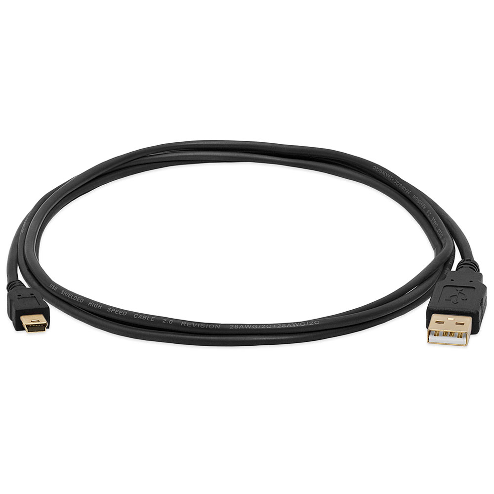 USB 2.0 A to Mini B 5-pin gold-plated cable – 6 ft, black. High-speed connection up to 480 Mbps from computers to mobile devices, cameras, MP3, more. Compatible with USB 1.0/1.1. Shielded, gold-plated connectors
