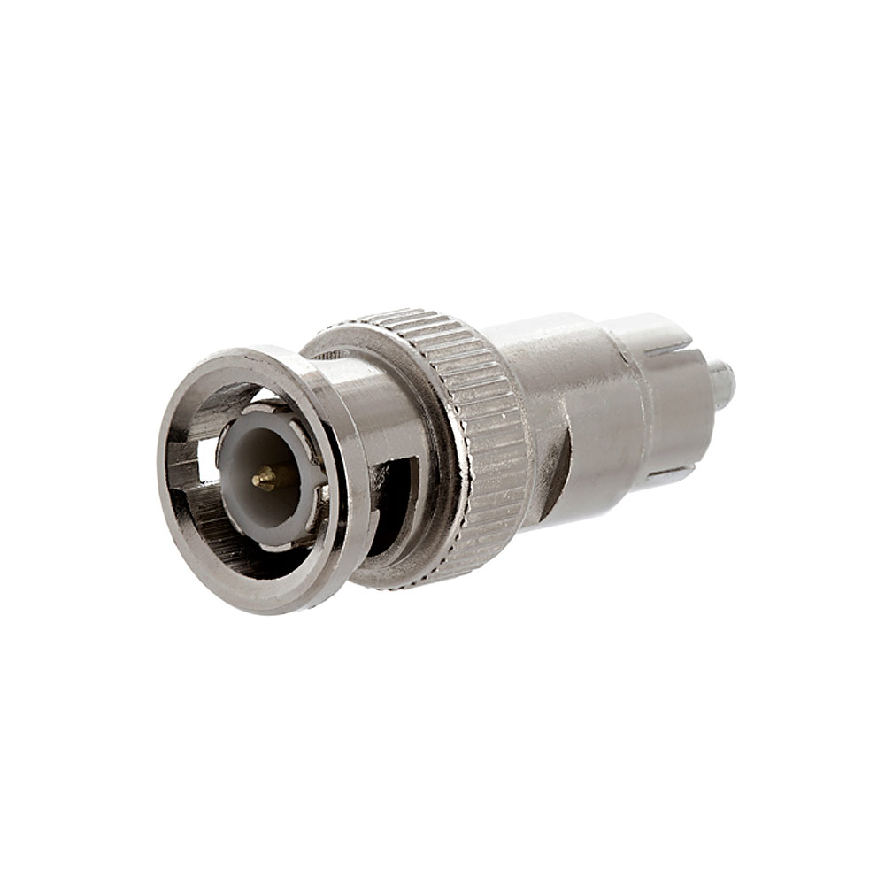BNC Male Plug to RCA Male Plug Adapter This adapter will let you convert any RCA connection into a BNC connection. A female RCA connector will attach to the male end, and convert the video signal into BNC. Allows to interconnect between different cable inputs and outputs Securely transmits BNC audio or video signals to RCA Good to use with CCTV system Connector 1: BNC Male Connector 2: RCA Male