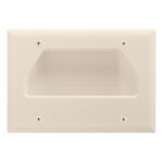 Wall Plate – Recessed Easy Mount Low Voltage Cable – Ivory Use the Easy Mount Recessed Low Voltage Cable Plate to install low voltage cables behind your flat panel TV, your amplifier or other audio and video devices. The wall plate can be installed upright or upside down. This plate’s innovative inchmounting wingsinch eliminate the need for a low voltage mounting bracket. The mounting wings are molded into the Easy Mount wall plate and fasten tightly against the back of the drywall. The standard Easy Mount Cable Plate has the capacity of a double gang plate-in a single gang profile. The wall plate can be installed upright or upside down. The new, thinner profile of the Easy Mount Cable Plate is designed to fit behind the industry’s thinnest mounts and flat panel TVs. Total dimensions: 4.9inch (L) x 3.25inch (W) x 2.25inch (D) Cable passthrough dimensions: 2.5inch (L) x 1.5inch (W) x 2.25inch (D) Maximum wall thickness for installation: 1 inch Minimum wall thickness for installation: 0.25 inch Color: Ivory