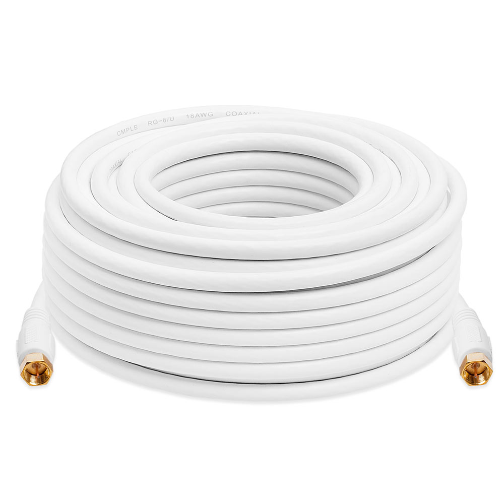 RG6 F-Type Coaxial 18AWG CL2 Rated 75 Ohm Cable 75 ft. white. Ideal for any video sources with F-type output connections.