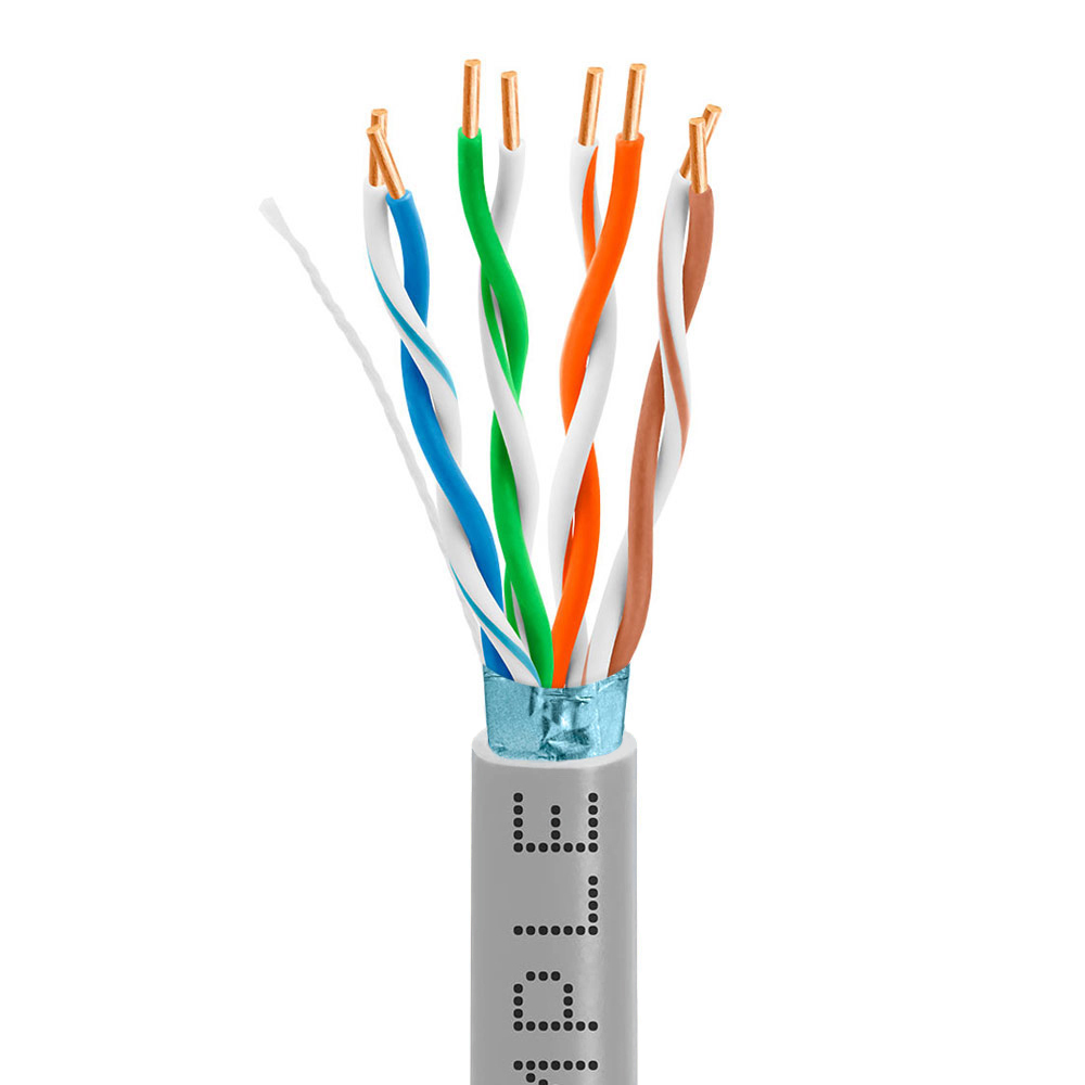 Cat5e FTP Shielded 24AWG Solid Bare Copper Bulk Ethernet Cable – 1000FT Gray Category 5E cable is used for computer networking (10/100/1000BASE-T), data, voice, or security system installation. Wiring your home, home office, office, or even an entire factory.This Cat5e Foil Shielded Twisted Pair (FTP) Shielded Cable consists of numerous pairs of copper wiring that are encompassed in aluminum foil. The foil casing provides proper insulation that is not offered by its unshielded twisted pair (UTP) counterpart. FTP cables are most suitable for factory conditions for wired ethernet networks.Solid Shielded Cat5e Ethernet cable is commonly used for long, stationary runs, in environments with a larger amount of electromagnetic or radio frequency interference (EMI/RFI). While solid conductor cable is not as flexible as those with stranded conductors, it provides better performance over longer distances.This data communication cable can sustain up to a maximum of 350 MHz high-speed data transfer rates. It is suitable and supports fast ethernet and megabit ethernet as well as 1000BASE-T Gigabit Ethernet that offers speeds up to 1000 Mbps. The copper wiring conductor of this cable is 24 AWG which offers less heat and less resistance which allows the signal transmission to travel the greater length and this cable meets your requirement of network.Polyethylene insulation provides corrosion and chemical resistance and enhanced durability. Solid core conductors allow long-distance runs while preserving optimal performance. The PVC jacket is flame, sunlight, and UV retardant.This cable can be used with a variety of network devices that include but are not limited to computers, ethernet hubs, telephones, modems, printers, Wi-Fi repeaters, routers, servers, smart televisions, fax machines, PoE, IP Cameras, switches, game consoles, Xbox, PlayStation, Apple TV, Smart TV’s, and more. Supports 1000BASE-T Gigabit Ethernet, PoE, and PoE+ (IEEE 802.3af/at) up to 30W and 300V DC.Features:Comes in a pull-out boxFlame Retardant PVCHigh-performance data cableSuitable for high bandwidth voice and data installations4 Shielded Conductor Pairs24 AWG solid bare copper conductorsCable Length: 1000 FTColor: GrayStandards:ETL Listed CMR Type FTPC(ETL) listed FT4 FTPETL Verified to TIA – 568-C.2, and ISO/IEC 11801ROHS CompliantATM 155 MbpsEthernet 10BASE-T, 100BASE-TX, 100BASE-VG, 100BASE-T4,1000 Mbps 1000BASE-T Gigabit Ethernet™ (IEEE 802.3)