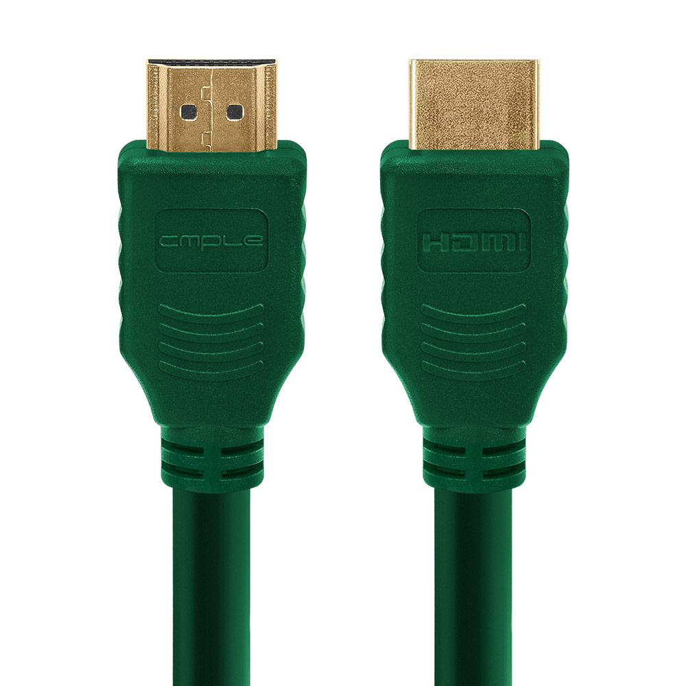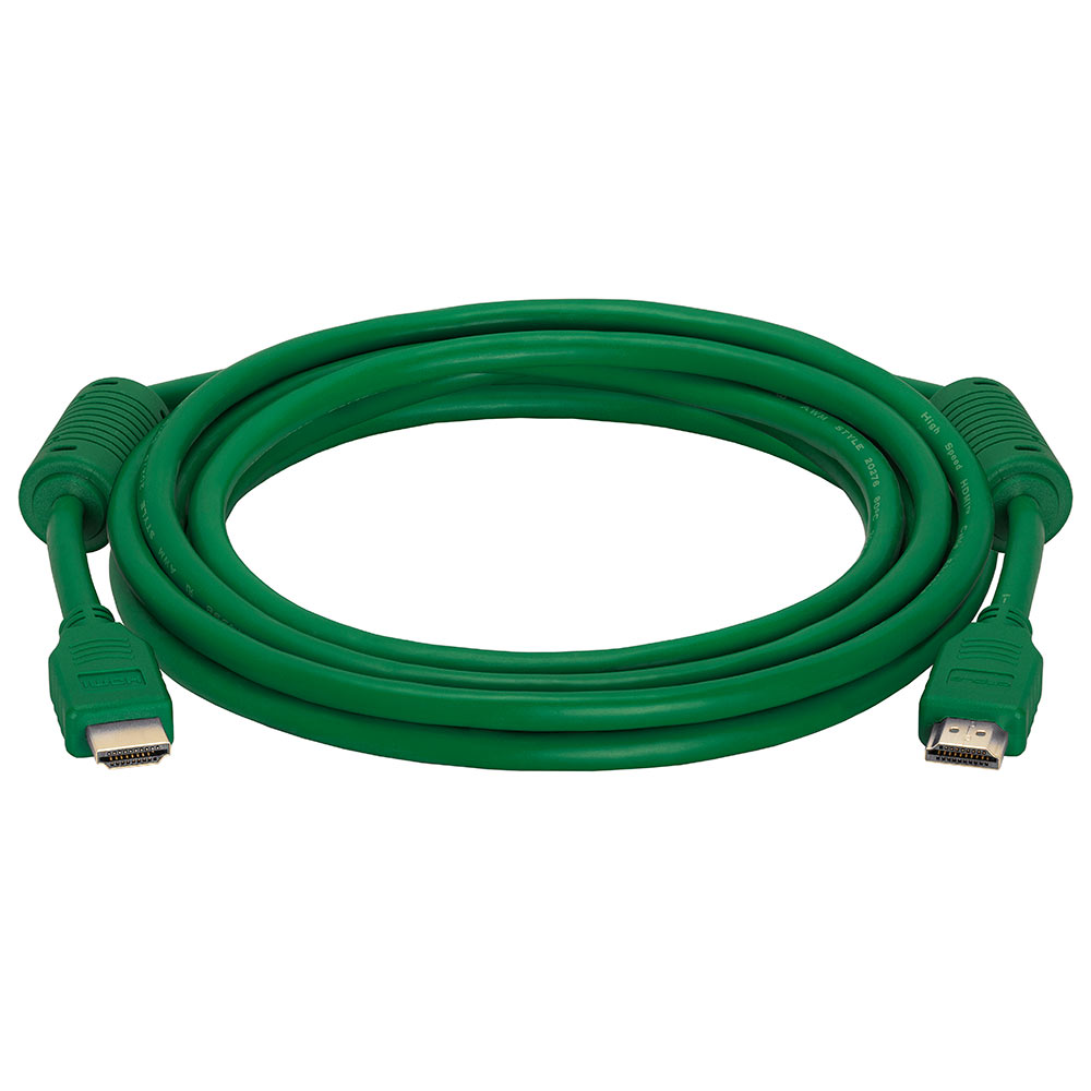 High speed 10 ft HDMI cable with ferrite cores. Supports up to 4K resolution, 3D compatible. Ideal for newest HDTVs, high-res digital audio with extra color spaces, audio return channel. 28 AWG. Green