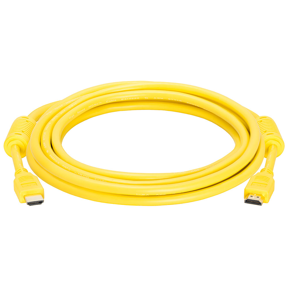 High speed 10 ft HDMI cable with ferrite cores. Supports up to 4K resolution, 3D compatible. Ideal for newest HDTVs, high-res digital audio with extra color spaces, audio return channel. 28 AWG. Yellow