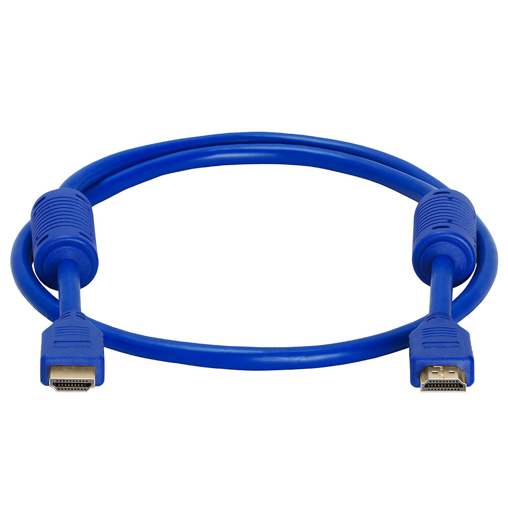 High speed 3 ft HDMI cable with ferrite cores. Supports up to 4K resolution, 3D compatible. Ideal for newest HDTVs, high-res digital audio with extra color spaces, audio return channel. 28 AWG. Blue