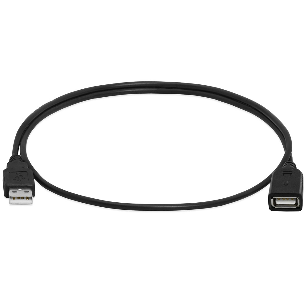 USB 2.0 A male to A female extension cable, 3 ft black. Backward compatible with USB 1.0 and 1.1, high speed to 480 Mbps, molded connectors, suitable for peripherals, cameras, MP3 players, more