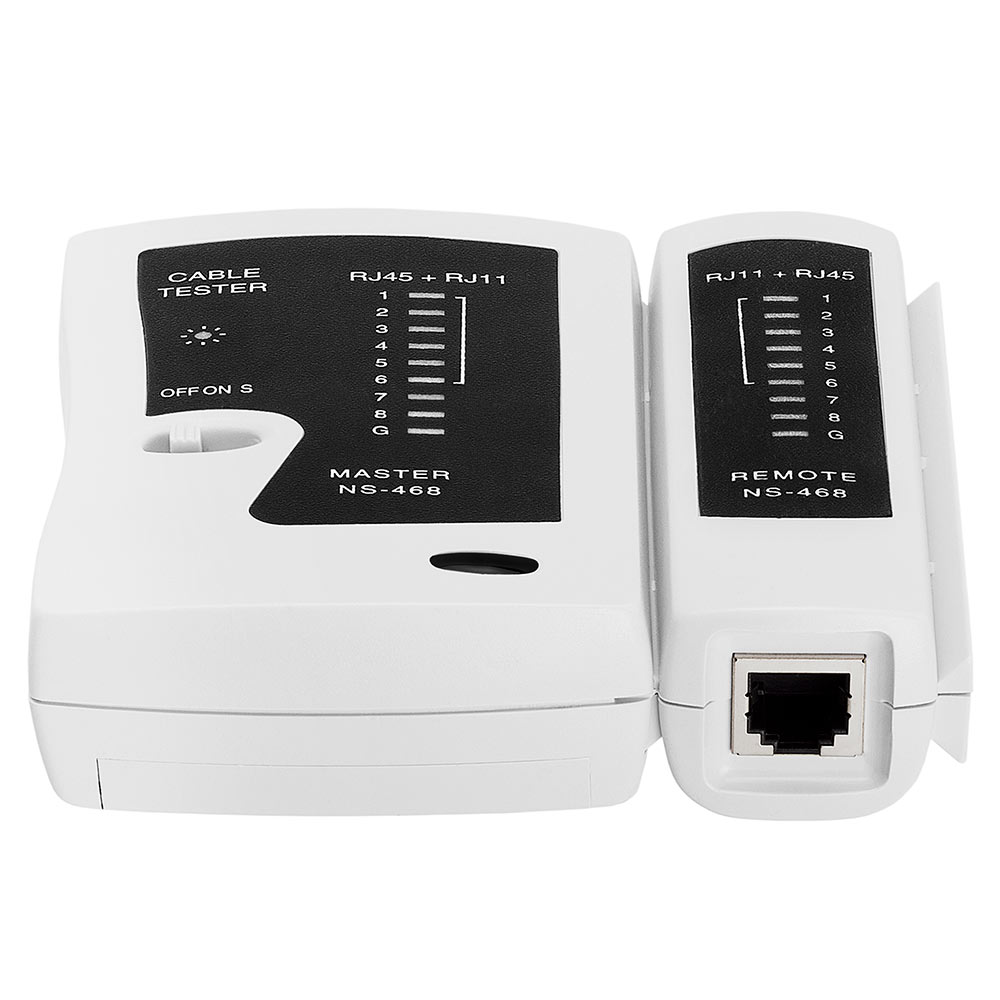 Multi-functional LED Network Cable Tester for BNC, RJ11, RJ12 and RJ45 LAN Network Cable Tester Cat5 Capable to judge wrong connection, short circuit and open circuit Grounding Test. Automatically scan mode, rapidly testing, the streamline shape is in accordance with the design of somatology. Durable design, working well even in construction location. Features: Cable tester for LAN, Networking, BNC cables, and phone cables Automatic efficient scan for the miss wiring, disorder cable, open and short circuit Tests continuity of UTP/STP cables Clear and simple LED display Powered by DC 9V reduplicated battery (not included) High quality soft leather case provides more secure protection Remotely test cable up to 1000 ft in length ( remote kit included )