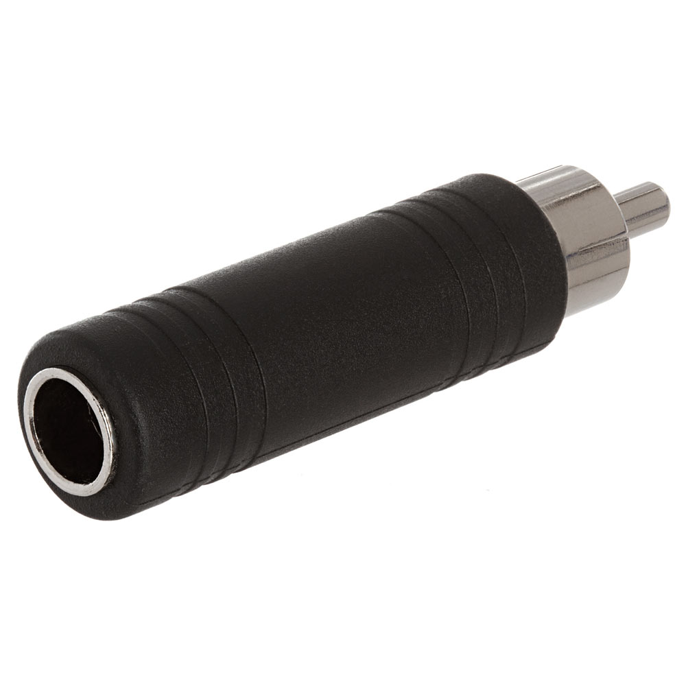 RCA Plug to 6.35mm Mono Jack Adapter This RCA Plug to 6.35mm Mono Jack Adapter converts 6.35mm Mono Plug to RCA Plug. With its full molded construction, this splitter will split the audio signal without a loss of quality. Black molded plastic construction Nickel-plated contacts Connector 1: RCA Plug Connector 2: 6.35mm Mono Jack Use with PC, stereo, MP3 players External Length / Height: 52mm