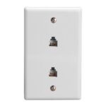 Wall Plate Jacks 6P4C Single White Telephone wall plate with RJ11 connector. Single Jack wall plate for connecting telephone lines Accept phone cords with RJ11 connector with 4 conductors (2 lines) Color coded Screw on type line connectors on back