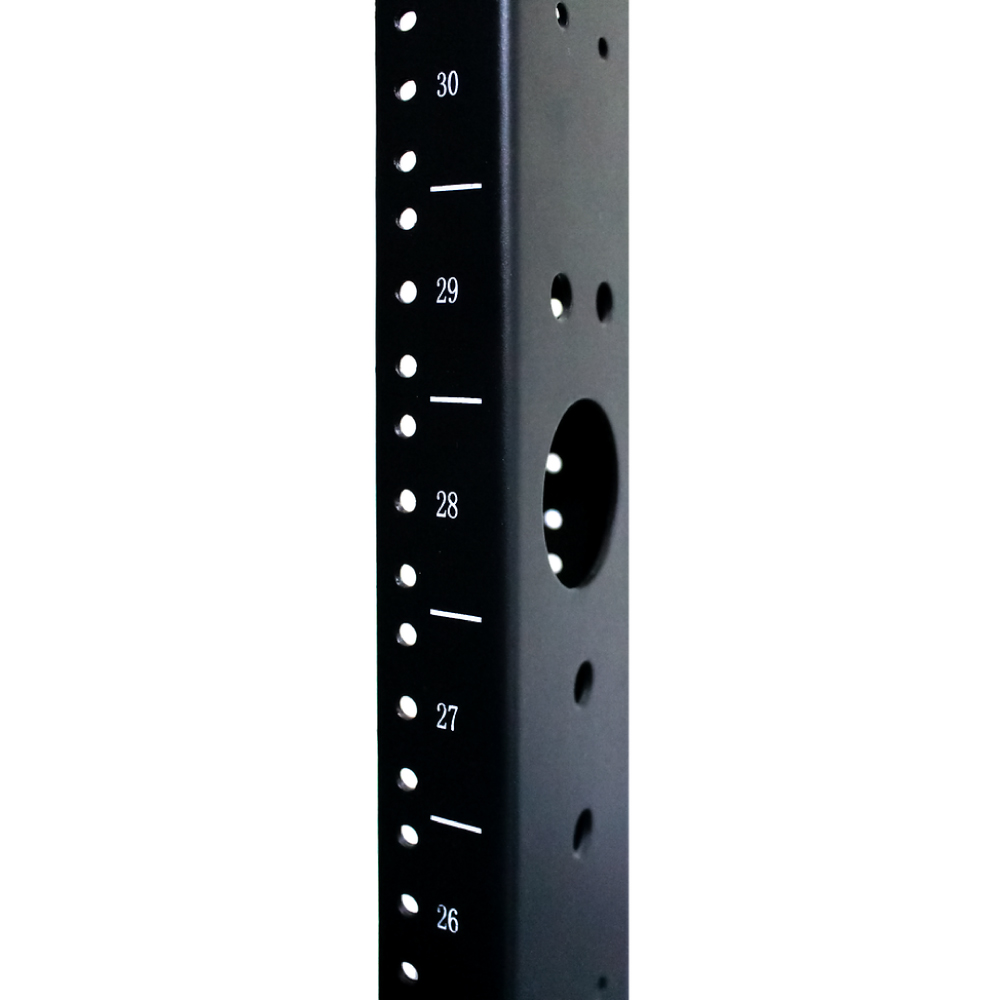 4 Post 45U Free-Standing Server Rack (4-POST-45U) The fact that you may run the cables with obstacles from doors and panels won’t frustrate you when using an open frame rack. It is just formed by 4-post racks with no limitations to each orientation. With this rack, you will no longer consider whether it can contain all your applications within the space anymore.The 45U rack is compatible with all standard 19-inch equipment that supports 4-post mounting. The mounting depth is adjustable from 22 to 40 inches. Numbered mounting holes and button-hole mounting for vertical PDUs and cable managers – simplify equipment installation.This rack features heavy-duty steel construction, with a powdered coated finish that ensures that they keep all edges and surfaces smooth, greatly reducing the possibility of injury or wear on cable jackets.The open-rack is easy to assemble using the included one type of screw connection. The four vertical mounting rails have threaded holes and cable management slots for securing equipment. With compact size, open frame server racks come at the right time to help stay organized cost-effectively.Features:Compatible with: 19inch wide equipmentAdjustable mounting depth 22” to 40”Number markings on rails #12-24Round threaded/numbered mounting holesToolless mounting for vertical PDUs and cable managersMaterial: Cold rolled steel with a black powder finishSelf-squaring design with bottom anchoring holesMaximum capacity: 800lbs(363kg)Product ships unassembledPackage Includes:4 x Vertical Rail2 x Bottom Corner Section2 x Bottom Center Section2 x Top Left Corner Section2 x Top Right Center Section2 x Top Center Section2 x Base Bracket2 x Top Bracket36 x M8 Bolt28 x Cable Management Hook#12-24×5/8” Phillips Screws1 x M8 Wrench