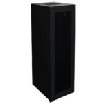 This Black 42U Server Standing Cabinet on Casters with Cooling Fan is specially made for placing up to 42 units 19inch network equipment with a mounting depth up to 32 in. It has a solid steel construction with lockable doors and holds up to 1700 lb.