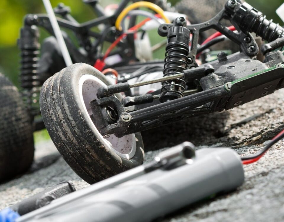 Suspension arms should move freely and return smoothly. Cracks near hinge pins or shock mounts are red flags. Bent turnbuckles and mismatched components affect handling and confidence.